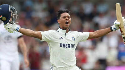 NEW DELHI: India’s young batting star Yashasvi Jaiswal produced a fighting, memorable hundred in the first Test against England at Headingley, Leeds, on Friday. Battling intense hand cramps and visible discomfort, the 23-year-old showed remarkable grit and composure to reach his fifth century in Test cricket.Despite the physical struggle, Jaiswal stood tall against a lacklustre England bowling attack, dispatching deliveries with power and precision. His aggressive intent never waned as he punished anything loose with confidence, scoring freely across all parts of the ground.Jaiswal reached his hundred off 159 deliveries — an innings that featured 16 crisp boundaries and a towering six. It was a perfect mix of resilience and flair as he carried India forward with an authoritative knock.The emotional moment of his century was captured and shared online by 14-year-old Vaibhav Suryavanshi, a rising cricket talent who idolises Jaiswal. In the video, Jaiswal is seen on 99 before nudging a single off Brydon Carse to bring up his hundred. His celebration was full of passion — a loud roar, a leap in the air, helmet off, arms stretched, followed by a warm hug from Shubman Gill at the other end.