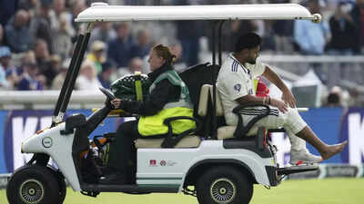 TimesofIndia.com in Manchester: The moment the ball crashed into the side of his right boot, Rishabh Pant was in serious pain. England went up after their appeal was turned down, and the replays suggested that some bat saved the left-hander after he failed to make a good connection with the audacious reverse-sweep. Pant survived the shout for leg before but couldn’t survive the pain, as he struggled to stay still due to the unbearable pain. The moment the boot came off, one could see the swelling as the camera zoomed in on the impact point.The physio gave the initial treatment; there was some blood, but the pain didn’t subside as the 27-year-old continued to grimace. The damage was done, and Ravindra Jadeja was getting ready to walk out. But when Pant tried to stand up, he couldn’t keep the foot down. A mini-ambulance was summoned to ferry the stumper back to the change room.