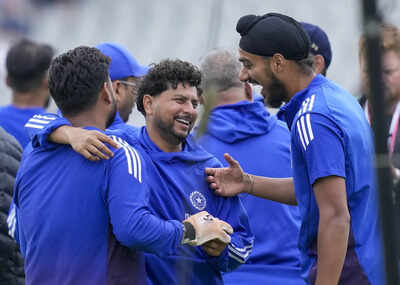Manchester: India’s Rishabh Pant, Kuldeep Yadav and Arshdeep Singh during a warm up session before the fourth test cricket match between India and England, at the Old Trafford Cricket Ground, in Manchester. (PTI Photo/R Senthilkumar) (PTI07_23_2025_000219B)