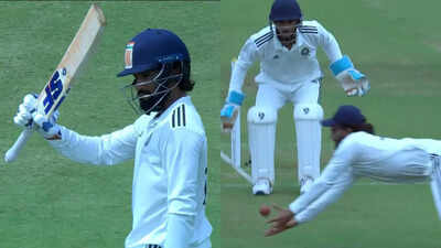 Central Zone captain Rajat Patidar once again stole the spotlight in the Duleep Trophy final, following up his fielding brilliance on the opening day with a commanding century that put his team firmly in control against South Zone. On Friday, Patidar struck 101 off 115 deliveries, with his innings featuring 12 fours and two sixes, to stretch Central’s advantage. Walking in at 74/2 after 30 overs, the skipper anchored the innings and only departed once his side had reached 260. By tea on Day 2, Central Zone had reached 276 for five in 72 overs, holding a 127-run lead.Besides Patidar, opener Danish Malewar chipped in with a half-century, with Yash Rathod also getting a fifty. Patidar’s effort with the bat carried on from his acrobatic attempt on Thursday, when he pulled off a sensational diving catch that went viral within minutes. The moment arrived in the 49th over of South Zone’s innings after off-spinner Saransh Jain got extra bounce against Salman Nizar.Watch Patidar’s century celebration hereThe ball bounced off the batter’s glove and towards silly point, where the fielder failed to cling on. Patidar, standing at gully, reacted instantly, diving forward to collect the rebound just before it touched the ground. The skipper’s quick thinking summed up a dominant start for Central Zone, who had bowled South out for just 149 in 63 overs. Having opted to bowl first after winning the toss, Central’s openers Danish Malewar (28*) and Akshay Wadkar (20*) ensured the day ended with their side on 50 without loss, narrowing the deficit to 99. Patidar’s role in the final has been decisive. Already carrying 268 runs in three innings this season at an average of 68.33, his latest century has further strengthened Central Zone’s grip.