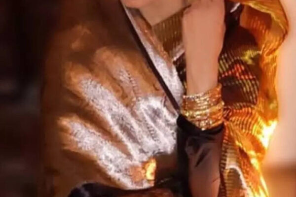 Saree queen Rekha shines in Kora gold Banarasi