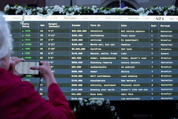 Last week, for roughly 30 minutes, something unusual flicked across the tickers at the New York Stock Exchange. It wasn’t the rally of a newly public company or a market in turmoil. It was the rising and falling value of single men in the city. Or at least it was the purported value of single…