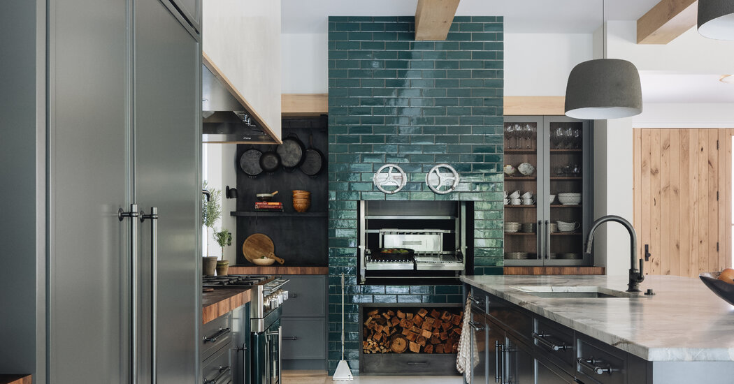 For the kitchen of an original Spanish Colonial ranch house in western Texas, he added both a pizza oven and a South American grill known as an asado. The asado came with modern amenities, including a stainless steel carriage that could be raised and lowered as the stacks of burning logs turned to coal. (Fireproof lightbulbs put a spotlight on the action.) The pizza oven sat in a traditional arched opening of reclaimed firebrick surrounded by white hand-textured plaster. Mesquite, cherry and hickory logs were stacked below. “From a planning standpoint, you don’t want to run outside to get your wood,” Mr. Smith said.