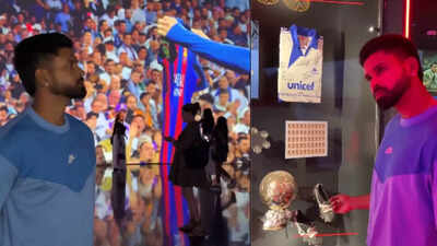 Watch: Shreyas Iyer visits FC Barcelona museum, shows off Barca jersey | Cricket News